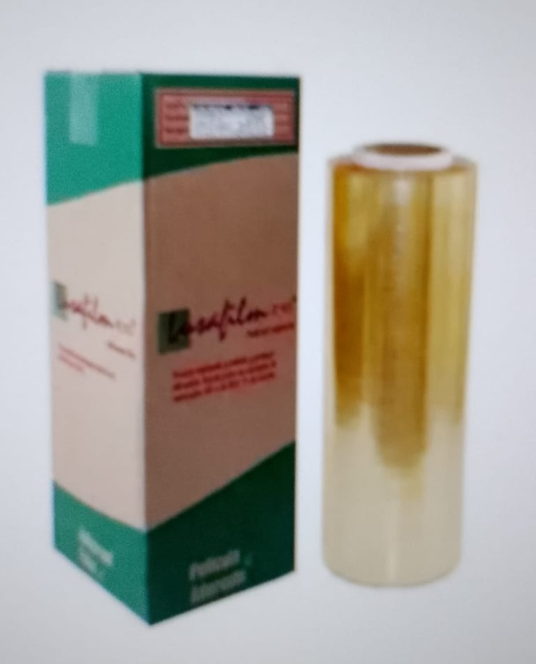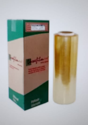 O filme stretch é projetado para se esticar e aderir aos produtos sem a necessidade de calor ou adesivos